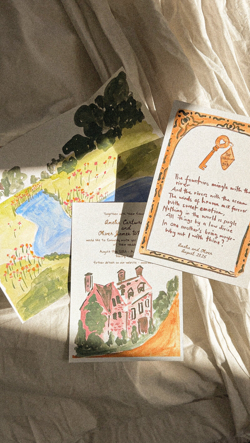 Maanan Studios approaches wedding stationery as art direction — thoughtful, composed, and built to last. Each piece is a commission, created to be kept and remembered long after the day is over.